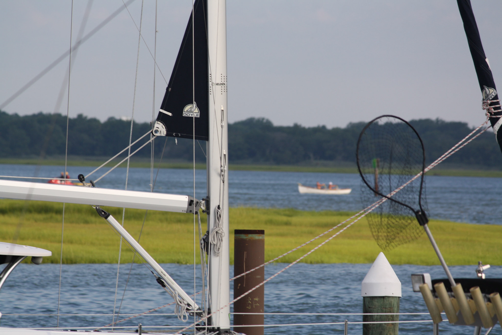 Lifeguards row beneath the Rio Grande Ave. bridge during Around the Island Row competition